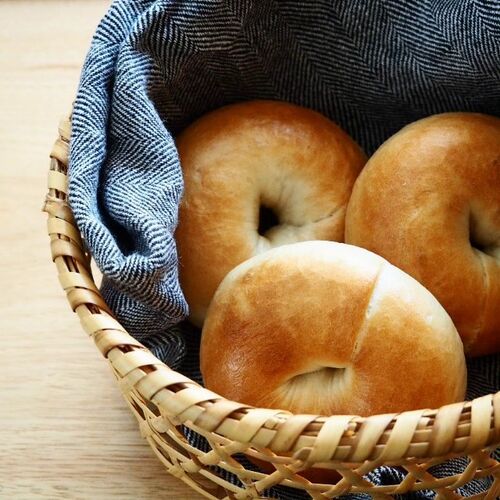 少しのイーストでゆっくり発酵。 6個焼いたけどマシなやつ、3つ 戸隠竹細工の六つ目籠に入れてみた。 甘い系もしょっぱい系もいけるので もっぱらプレーンベーグルばかり…。