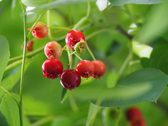 2024-05-29 ジューンベリーの赤い実 昨夜の風雨の後片付けをしに庭に出て、ジューンベリーの株元を見ると何やらあかい実。 頭上をみると☝わーい😆 去年は散々な剪定をされていて花が咲かなかったジューンベリー。熟したものを食べてみたら甘ーーーーい🥰 かなり背が高くなりすぎているので、上の方の収穫は難しいかもだけど、冬の休眠期にはいったら剪定をしてみよう。そして何年かかけて、キレイな樹形に戻してあげたい。